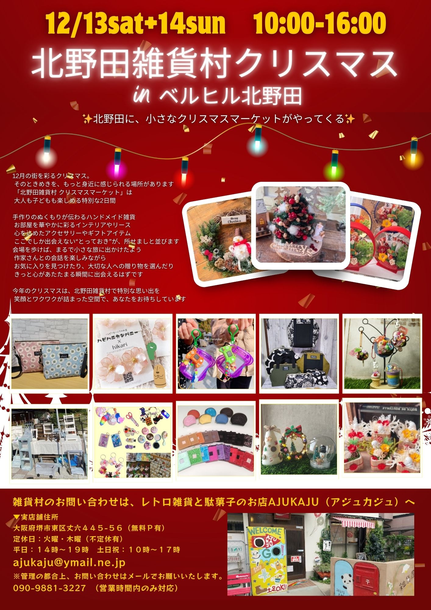 【出店(出展)者募集中】12/13(土)+14(日)開催 第23回北野田雑貨村クリマス in ベルヒル北野田クリマスイベント
