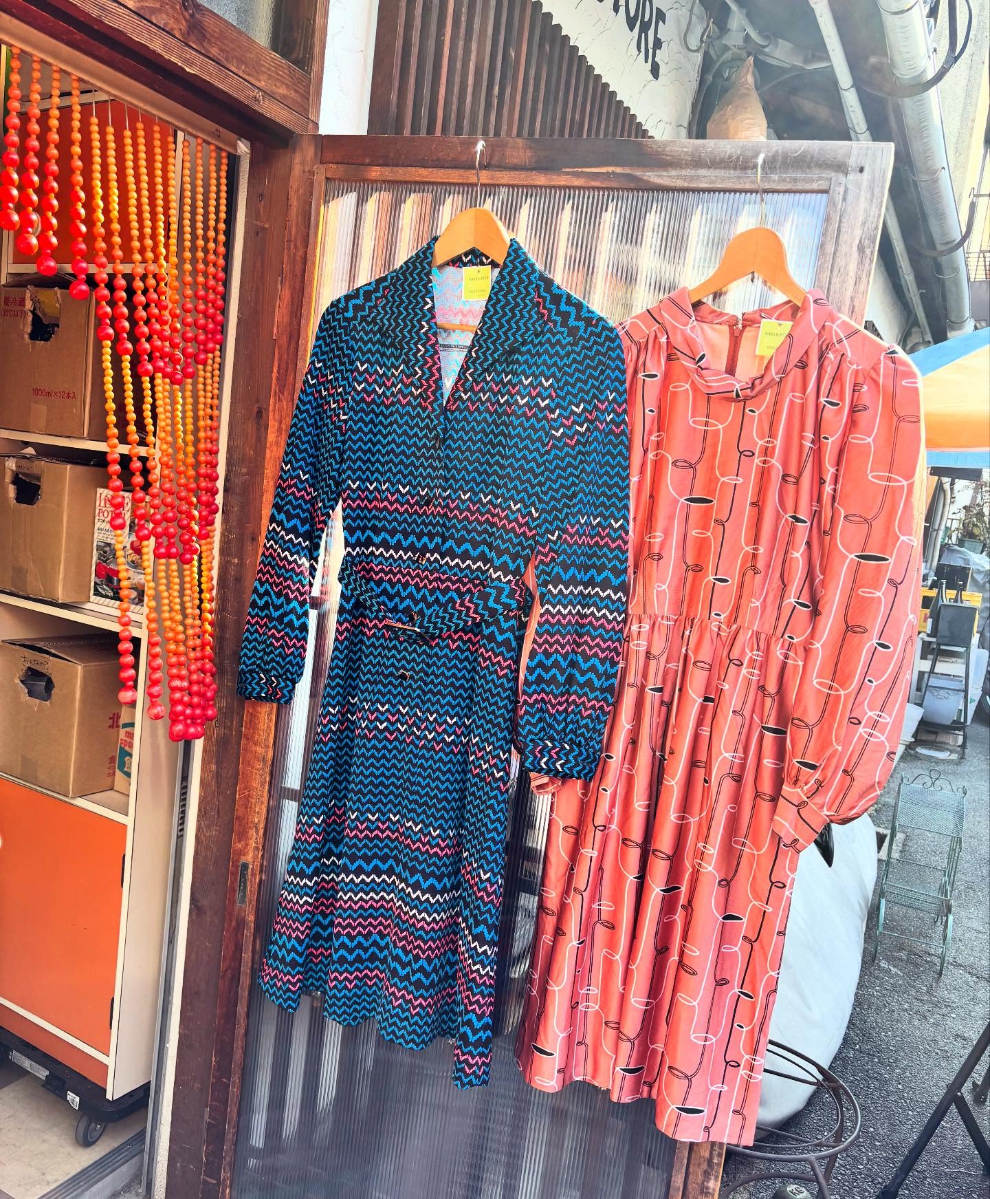 一歩足を踏み入れると、そこはまるで1970年代。店主こだわりの国産古着や、当時物のデッドストック食器、ポップでカラフルなインテリア雑貨が所狭しと並ぶ「宝探し」のような空間です。