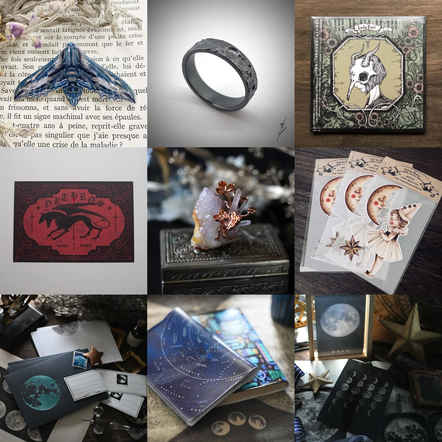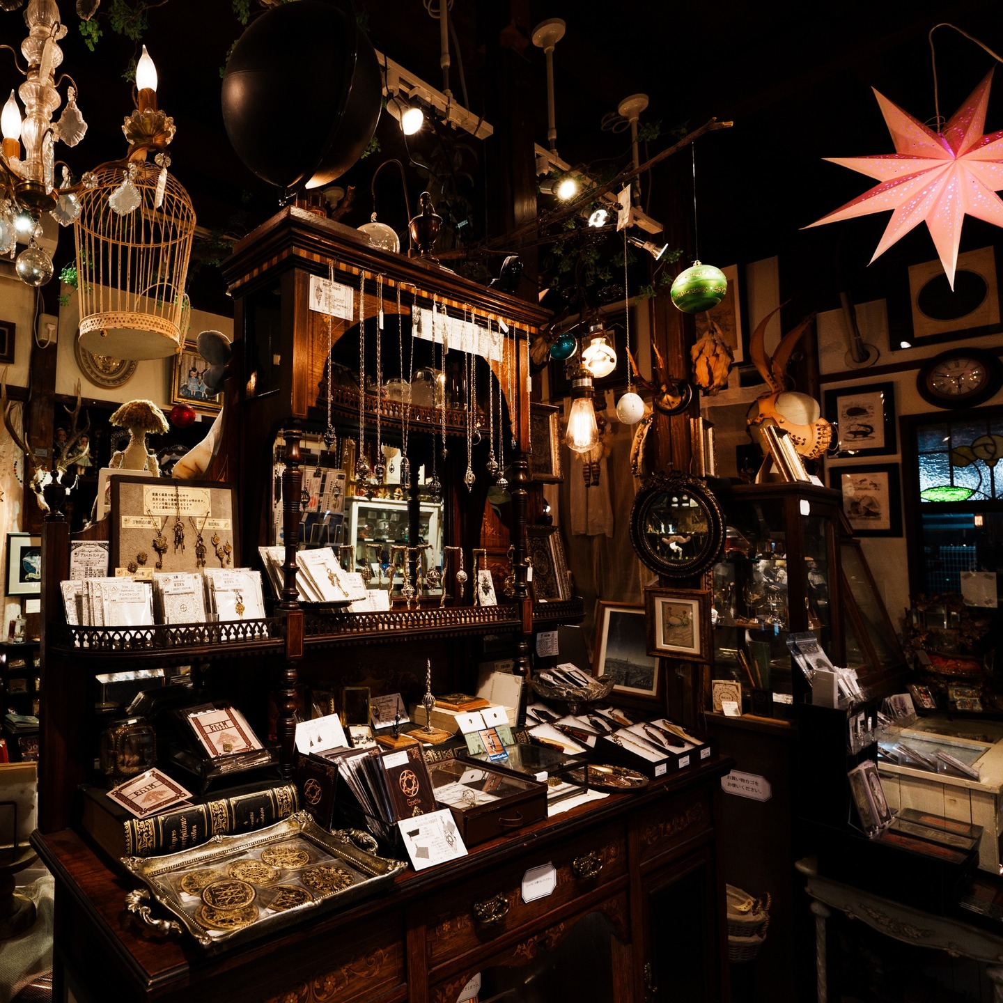 店内はパリの隠れ家のようなクラシカルで落ち着いた雰囲気。「天体」や「理科系雑貨」、「ドール」など、少しミステリアスで美しい世界観が広がります。