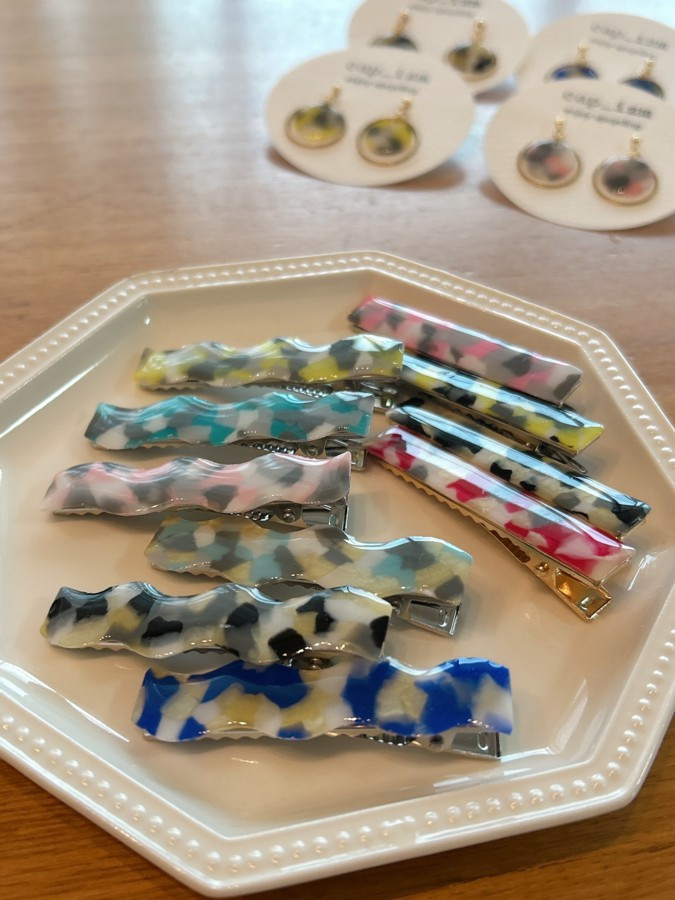 ヘアピンや鏡にホイップし、好きなパーツをつけて可愛く仕上げます。