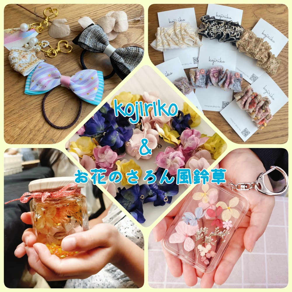 布小物とリボン雑貨を扱う「kojiriko」と花雑貨を扱う「お花のさろん風鈴草」の共同出店です。