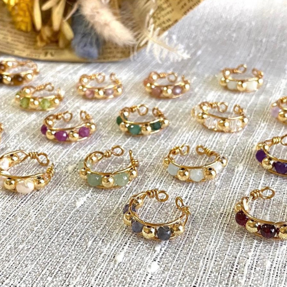天然石やビーズを使ってエキゾチックなデザインのカフリングや耳飾り、ブレスレットなどのアクセサリーを制作しています。