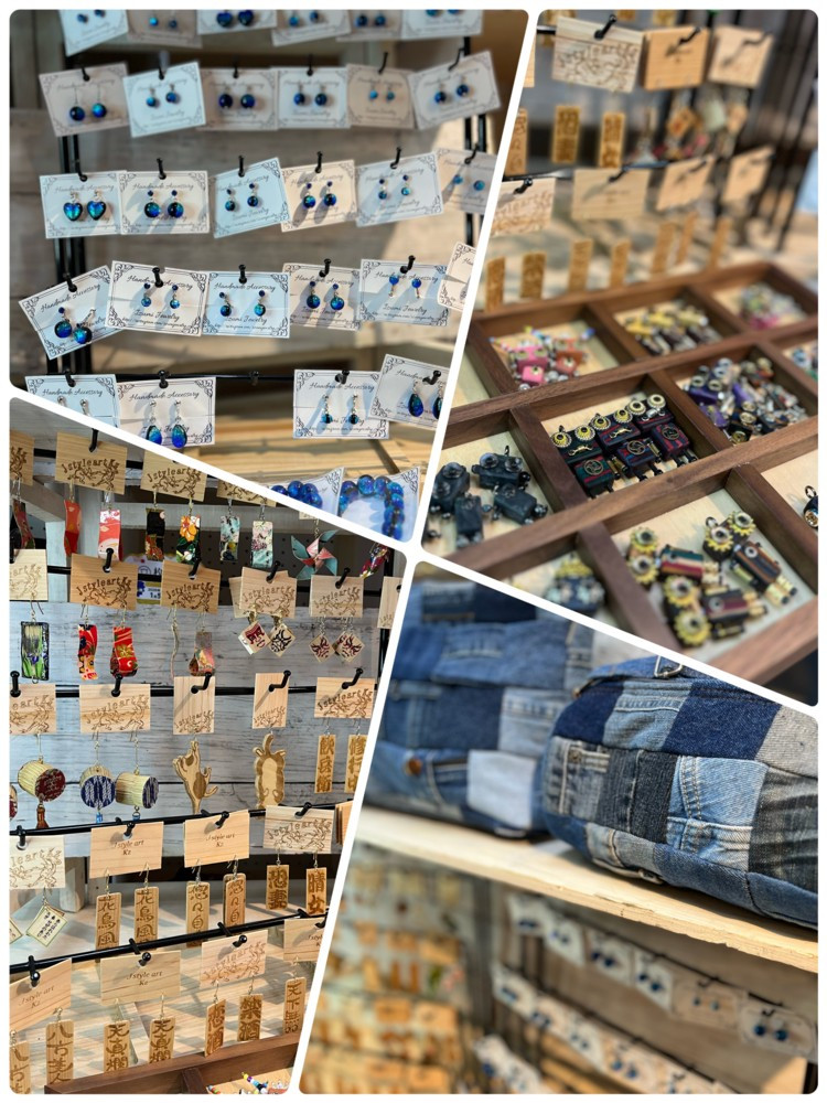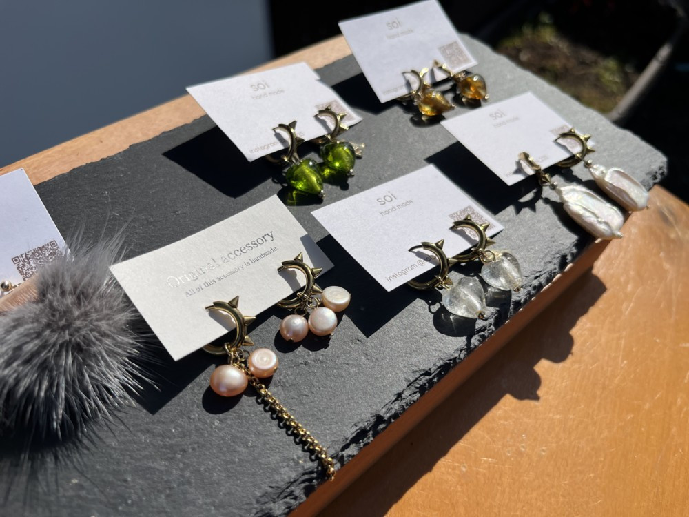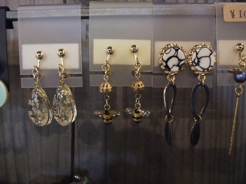 置物中心の雑貨と耳飾り中心のアクセサリー
