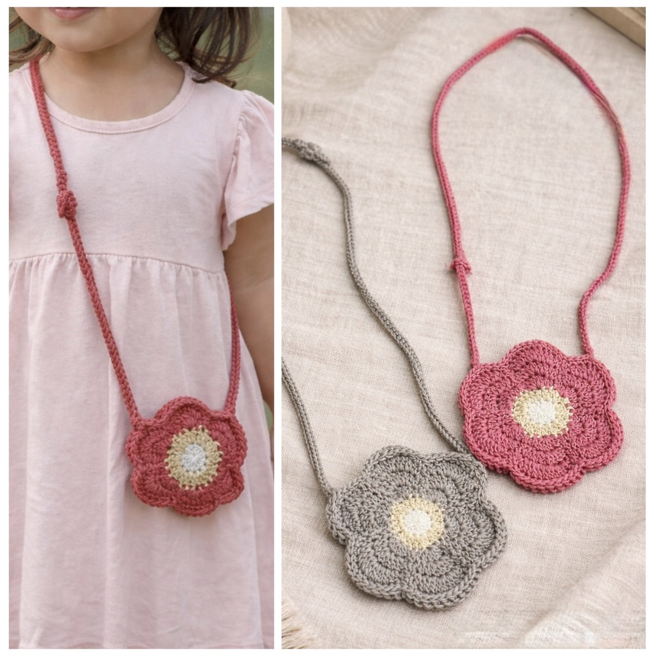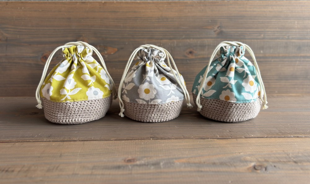 マフラーやニット×布のバッグやポーチなどを使っています。