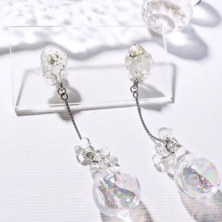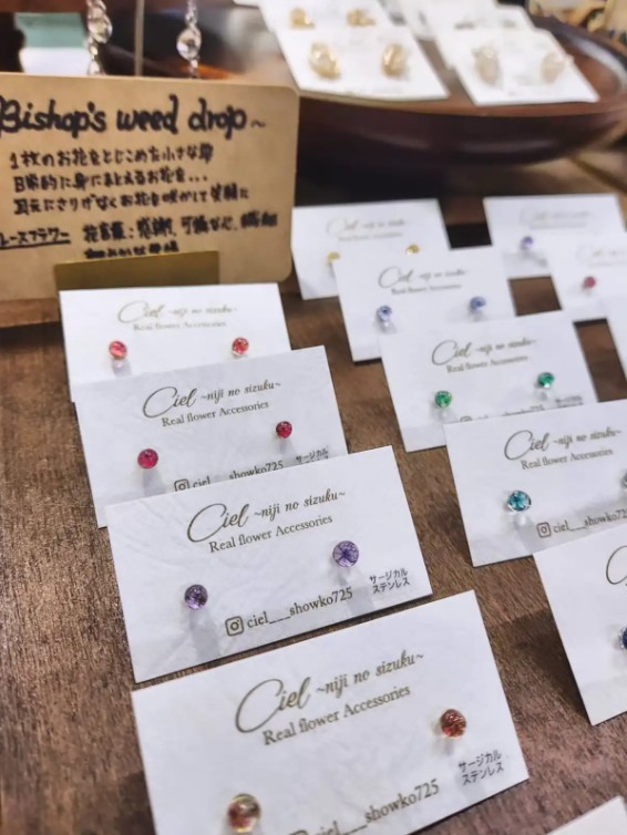 本物のお花とヴィンテージガラスや天然石を組み合わせたオリジナルアクセサリー。身に纏うお花屋さんです。小さなお花探し楽しんでみてください。